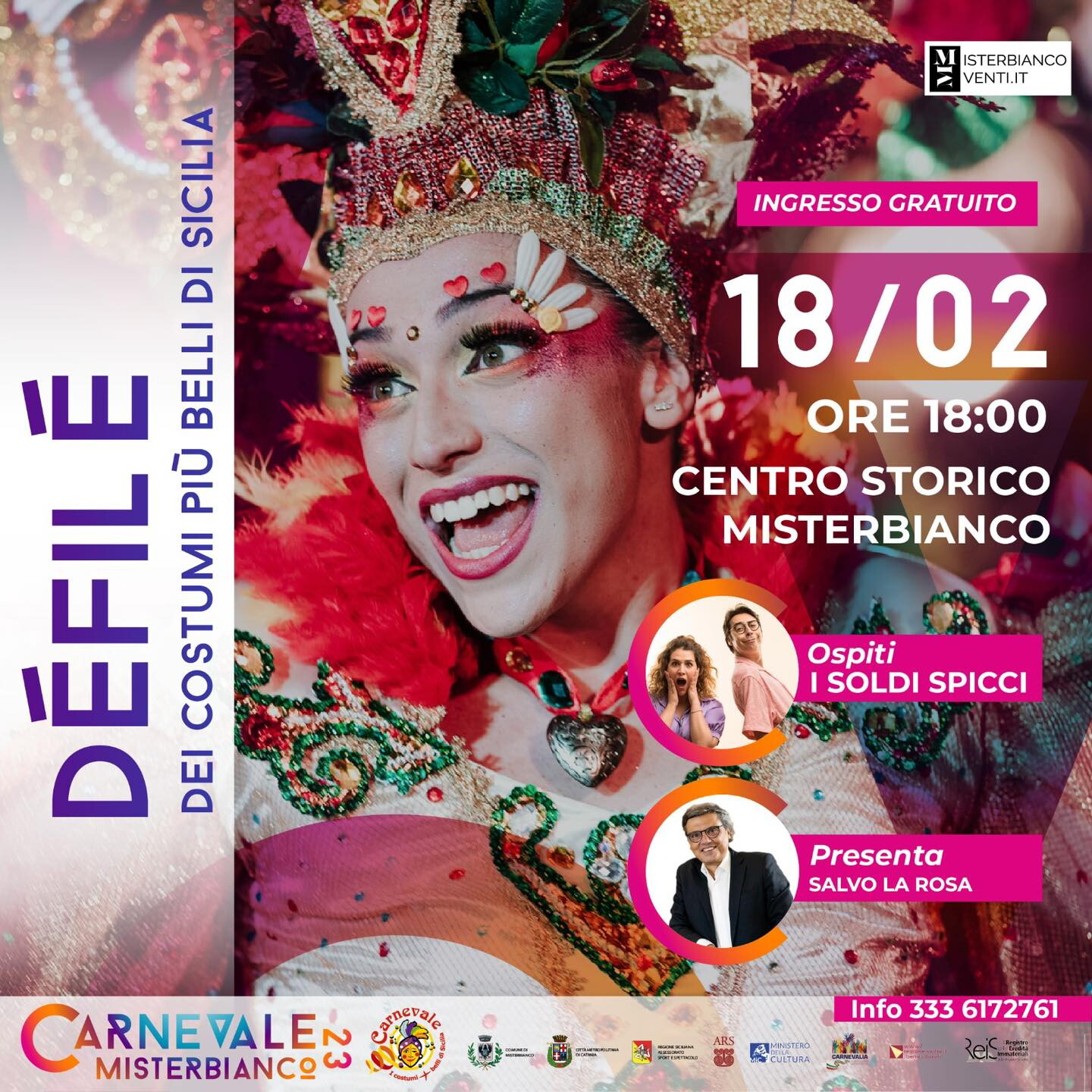 Prossimi appuntamenti in maschera domenica 19 e martedì 21, con Manuela Arcuri che farà da madrina, sempre con inizio alle 16:30; poi venerdì 17 febbraio l’imperdibile concerto dei THE KOLORS in Via Gramsci e sabato 18 febbraio il tradizionale Défilé, con i costumi più belli di Sicilia selezionati dalle Associazioni del Carnevale, spettacolo presentato da Salvo La Rosa con l’allegria de I SOLDI SPICCI.