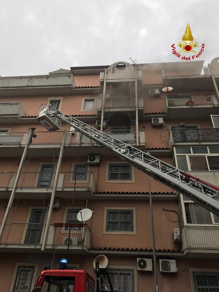 Catania - Nel primo pomeriggio, poco dopo le ore 15,00, una squadra dei vigili del fuoco ed un'autoscala del Comando Provinciale di Catania, è intervenuta in largo Umberto Spadaro, a Catania, per un incendio sviluppatosi all'interno di un'abitazione al quarto piano di un palazzo. Al momento in cui si è verificato l'incendio, nessuno si trovava in casa. La proprietaria, giunta sul luogo poco dopo, è stata colta da malore e trasportata in ospedale dal personale del Servizio Sanitario 118. L'appartamento ha subìto danni ai rivestimenti interni ed agli arredi. Le cause del rogo sono in corso di accertamento.