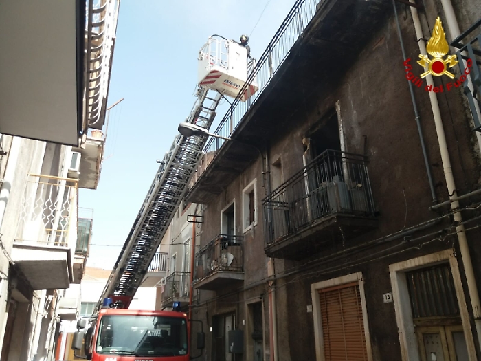 Paternò (Catania) - Poco dopo le 12,00 di questa mattina la squadra di vigili del fuoco del Distaccamento di Paternò, è intervenuta in via Cuneo per un incendio che si è sviluppato all'interno di un'abitazione al primo piano e che si è poi propagato anche ad un locale di sgombero sul terrazzo. L'incendio è divampato in una stanza adibita a cucina alimentata con un bombola di GPL, che comunque non è scoppiata. Salva l'anziana proprietaria dell'appartamento, che era fuori al momento dell'incendio: con lei uno dei suoi tre cagnolini; gli altri due purtroppo sono morti tra le fiamme.