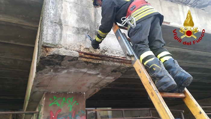 Caltagirone (Catania) - Nel pomeriggio di oggi la squadra dei Vigili del Fuoco del distaccamento di Caltagirone è intervenuta per la rimozione di alcuni calcinacci sul ponte della Circonvallazione di Viale Torre dei Genovesi in zona Altobasso, sul territorio del Comune di Caltagirone. Il delicato intervento è stato necessario per garantire la pubblica e privata incolumità in corrispondenza di quel tratto stradale.