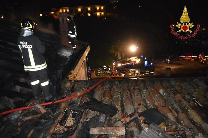 Nessun danno a persone, ma il tetto dell'edificio, sede di un albergo, è rimasto danneggiato. In corso accertamenti per accertare le cause dell'incendio.