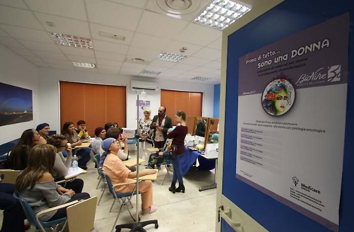Catania - Al reparto di Ginecologia e Ostetricia e di Oncologia in trattamento chemioterapeutico dell'ospedale Cannizzaro come in una sala trucco: specchi, pennelli, fondotinta e rossetti al posto di fleboclisi e cannule grazie alla serie di laboratori dedicati al make-up “Prima di tutto… sono una donna”. A sostenerli è “Medicare Onlus”, che da anni promuove l’esperienza del truccarsi come strumento di riscoperta della propria femminilità e di recupero dell’autostima, in un momento in cui la malattia mette a dura prova la persona anche a causa dei cambiamenti fisici.