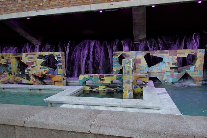 Sono stati istallati dei fari a led Ip 68 Rgb 24 w con un sistema di controllo in grado di interagire sulla variazione dei colori e della luminosità. L'impianto di illuminazione è in alternanza da tre a sette colori con possibilità di regolazione temporizzata e il sistema di controllo dispone di venti funzioni di programmazione.