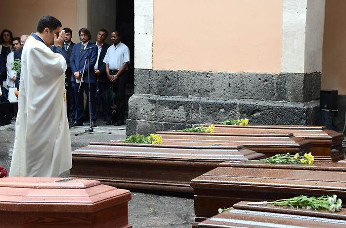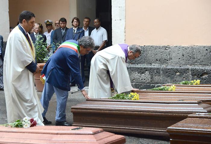 CATANIA - «Rendiamo onore a donne e uomini che hanno lasciato la loro terra nel tentativo disperato di raggiungere le coste dell’Europa». Lo ha detto il sindaco di Catania Enzo Bianco parlando, nella corte del Palazzo dei Chierici, ai funerali interreligiosi celebrati per quattordici donne e tre uomini morti durante la traversata del Mediterraneo e giunti nelle scorse settimane nel porto di Catania. Soltanto due di loro, un uomo e una donna, sono stati identificati. Bianco ha detto di essere «Orgoglioso di rappresentare una città molto meno egoista di tante altre, ben più ricche, che voltano le spalle di fronte a queste tragedie».