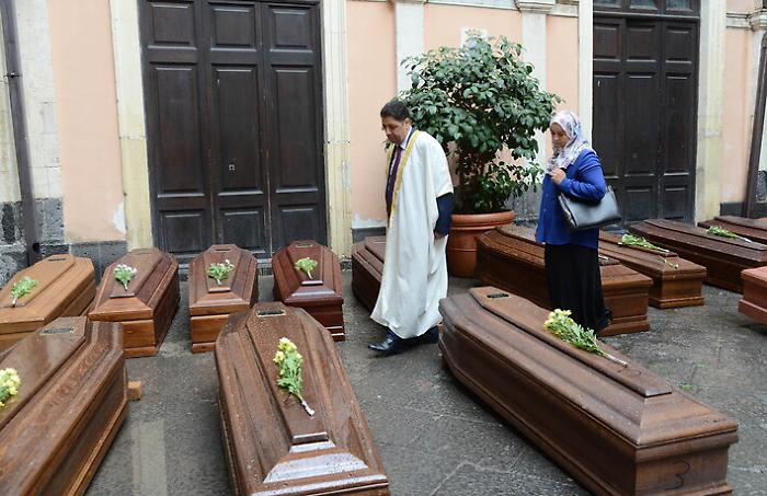 Quello di oggi è stato il terzo funerale interreligioso celebrato a Catania. Il primo, del 28 maggio del 2014 nel Palazzo Platamone, riguardava le 17 vittime - 12 donne, tre uomini e due bambine tra nigeriani, siriani ed eritrei - del naufragio di poche settimane prima nel Canale di Sicilia. I 17 migranti senza nome vennero tumulati in un mausoleo realizzato nel cimitero di Catania. Su ogni tomba venne inciso un verso della poesia «Migrazioni» del premio Nobel Nigeriano Wole Soiynka.