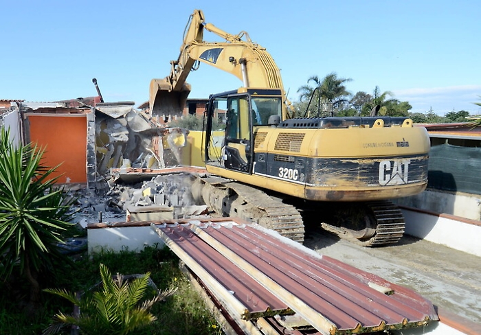 Catania - Ancora un'abitazione demolita nella zona dell'Oasi del Simeto. Già da diversi anni, l'amministrazione comunale di Catania, sotto l'egida delle varie sindacature, ha avviato un'operazione di bonifica che prevede l'abbattimento delle numerose abitazioni abusive, che soprattutto tra gli anni 60 e 70, sono state edificate a ridosso della battigia e a pochissima distanza dal mare, ricadendo all'interno dell'Oasi o nell'area pre-Oasi. La casa demolita questa mattina, prevista da un'ordinanza del Tribunale, era una di quelle che ricadeva nell'area pre-Oasi.