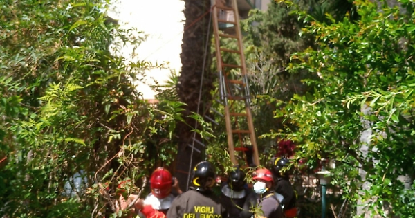 Catania - Momenti di paura stamane a Catania per un giardiniere rimasto vincolato a una palma in fase di potatura. L'episodio è accaduto nella parte alta di via Etnea. E' stato necessario l'intervento di un elicottero dei vigili del fuoco dal momento che la palma si trovava in un cortile non accessibile ai mezzi di terra. L'uomo era scivolato restando bloccato a 12 metri da terra a testa in giù. I vigili del fuoco lo hanno "liberato" con l’aiuto di una lunga scala e poi affidato all’equipaggio di un loro elicottero che ha lo ha "prelevato" utilizzando il verricello e portato a bordo.
