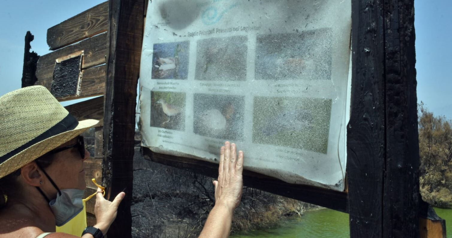I presagi di ciò che avremmo trovato all'Oasi del Simeto erano già tutti sulla strada per arrivare al Centro polifunzionale Torre Allegra. Si passa prima per la zona industriale, poi sul ponte Primosole, con l'odore acre che dopo giorni persiste: il nero del bruciato ha preso il posto della vegetazione secca e incolta, (troppo spesso denunciata anche su queste pagine) ai lati delle strade e nelle rotonde, perfino su tutte e due le sponde alla foce del fiume.