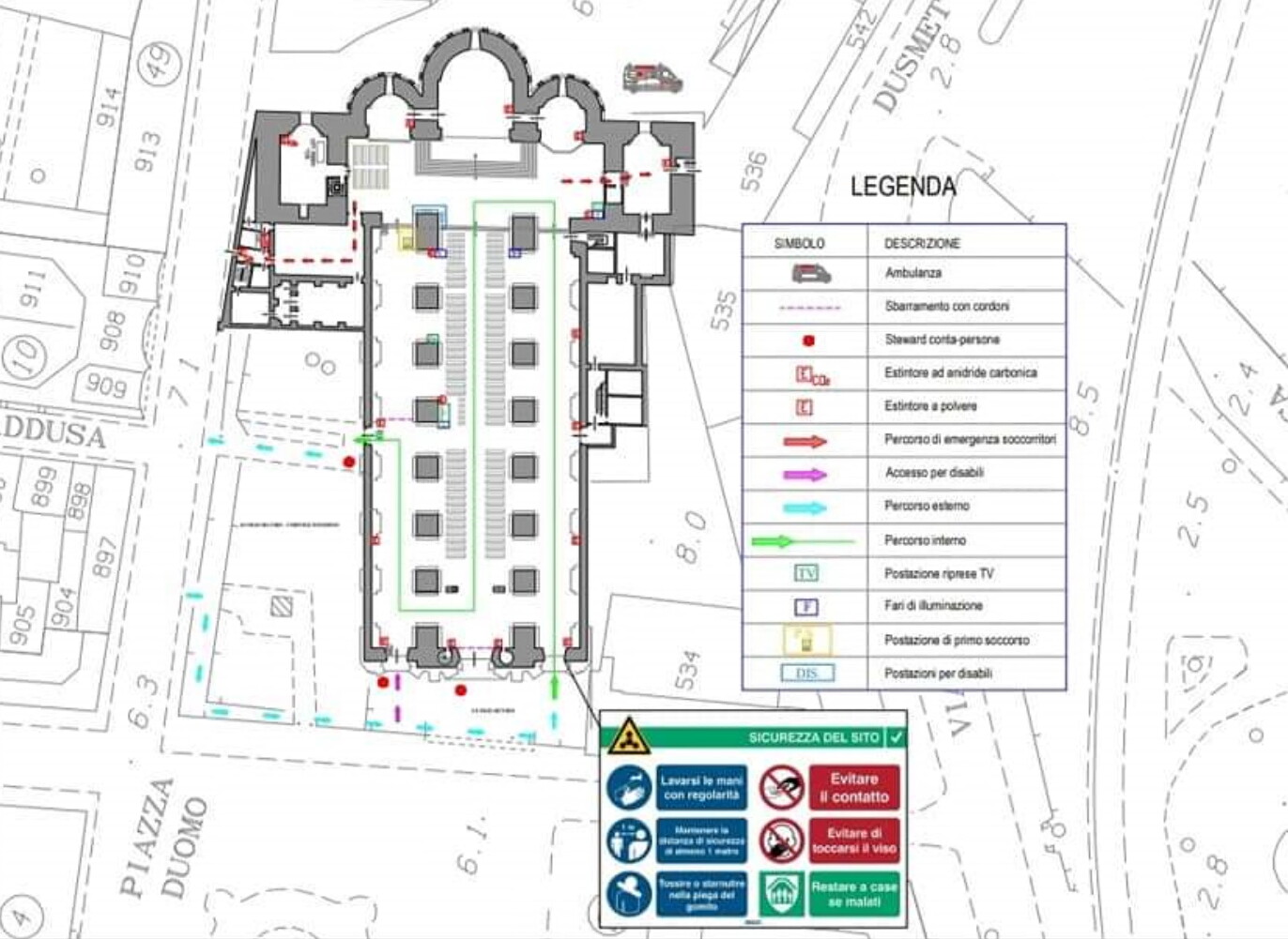 Su piazza Università e nei percorsi di canalizzazione verso l’accesso al cortile della Cattedrale saranno possibili i controlli sugli accessi necessari al mantenimento delle condizioni di sicurezza previste, sempre, dai protocolli Covid. A controllare ci saranno le forze dell’ordine e all’interno della Cattedrale, appositi steward e volontari. Piazza Duomo resta accessibile da tutte le vie che vi confluiscono, fatta eccezione per via Etnea che consentirà il solo passaggio verso Piazza Università per evitare formazione di flussi anomali; tuttavia, da Piazza Università si potrà arrivare a Piazza Duomo attraverso via Roccaforte e via Merletta. Inoltre, è fatto assoluto divieto sostare davanti i cancelli del sagrato della Cattedrale per evitare ogni eventuale assembramento.
