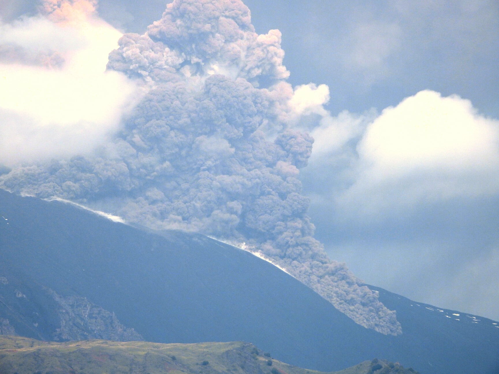 Vulcanologi dell'Ing-Oe durante un'osservazione diretta del versante sud orientale del cratere di Sud-Est hanno osservato una breccia dalla quale hanno avuto origine i flussi di materiale piroclastico descritti nei comunicati precedenti e dalla quale riscontrato ad osservarsi crolli e piccoli flussi che si dirigono in Valle del Bove raggiungendo quota 2.900 metri circa. Dopo aver raggiunto l'ampiezza massima alle 12 il tremore vulcanico ha iniziato una rapida discesa e alle.20 UTC è su valori medi in ulteriori approfondimenti. L'ultima localizzazione del tremore, alle ore 11.15, risulta in prossimità del cratere di Sud-Est ad una profondità di circa 3 km sul livello del mare. L'analisi dei dati clinometrici per l'evento parossistico ha mostrato variazioni in diverse stazioni, con valori massimi cumulati (pari a circa 3 microradianti) registrati alla stazione di Cratere del Piano (Ecp). I dati della rete Gnss nelle ultime ore non hanno mostrato variazioni significative.