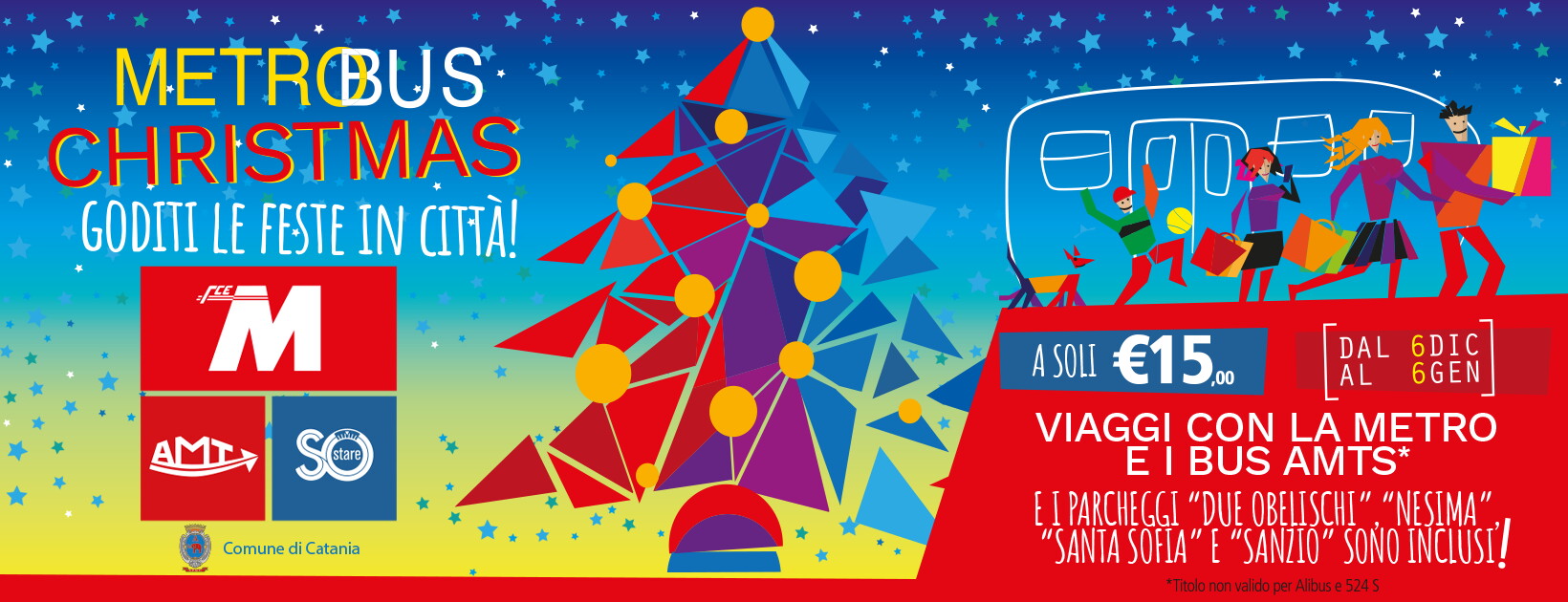 La prima novità è quella della Metrobus Christmas Card, che consente ai cittadini di viaggiare al costo di 15 euro sia sui Bus di AMTS che in Metro dal 6 dicembre 2021 al 6 gennaio 2022 e, sempre nello stesso periodo, di usufruire gratuitamente dei parcheggi scambiatori “Due Obelischi”, “Nesima”, “Santa Sofia” e “Sanzio”. È possibile acquistare le “cards” presso i rivenditori abituali ed anche presso la stazione Borgo di FCE. Inoltre, iniziativa riservata ai soli operatori economici, è possibile acquistare con uno sconto del 5% la suddetta Card. Le richieste devono essere inoltrate tramite mail all’indirizzo app@amts.ct.it . Sempre agli operatori economici è riservata anche la possibilità di acquistare con uno sconto del 10% voucher di sosta da regalare ai clienti per il pagamento delle strisce blu mediante l’APP SOSTARE. Le richieste di acquisto devono essere inoltrate tramite mail all’indirizzo app@amts.ct.it .