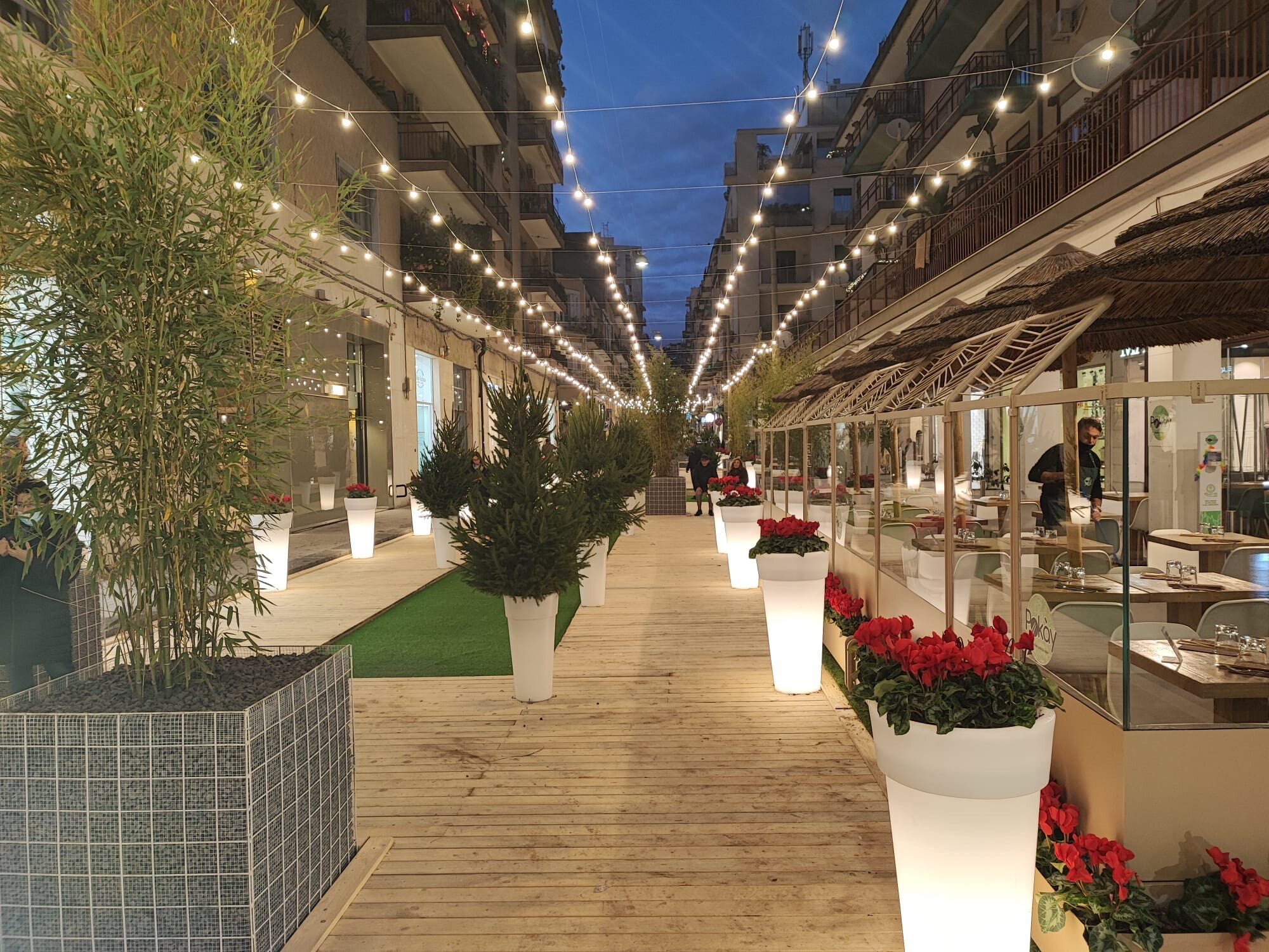 L’iniziativa nasce da Gennaro Puglisi, amministratore di due attività, sostenuta da altre attività commerciali. Imprenditori che hanno investito economicamente per ricreare l’atmosfera del Natale, secondo una filosofia green. Grazie alla collaborazione e sponsorizzazione di Giardini Crisafulli, un grande albero in legno che simboleggia l’incrocio tra design e sostenibilità, domina la via. Una chicca che i passanti in questi giorni hanno visto crescere a poco a poco e che oggi è pronta per regalare aria di festa, con rispetto per l’ambiente e originalità. “Conosciamo, viviamo tutti i giorni e amiamo questo spazio che ha grandi potenzialità, può essere migliorato e tornare a essere il cuore dello shopping e del passeggio”, dicono i commercianti in prima linea in questa piccola trasformazione estetica dove “forma e sostanza – dice Puglisi- in questo caso coincidono.  Abbellirla, addobbarla, impreziosirla, ci è reso possibile dalla chiusura alle auto, sinonimo di vivibilità e civiltà”.