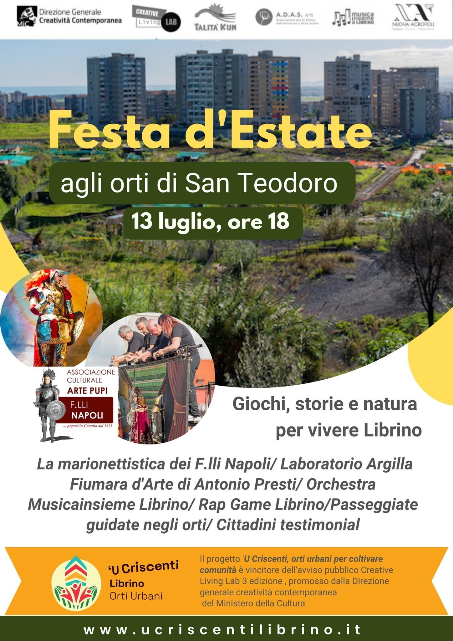 È tempo di Festa d’Estate agli orti sociali di San Teodoro a Librino. Mercoledì 13 luglio alle 18 gli assegnatari degli orti unitamente al team di esperti e tutors del progetto ‘U Criscenti, orti urbani per coltivare comunità a Librino , hanno organizzato una manifestazione ricca di spettacoli, laboratori creativi e natura che chiuderà la fase più importante del progetto.