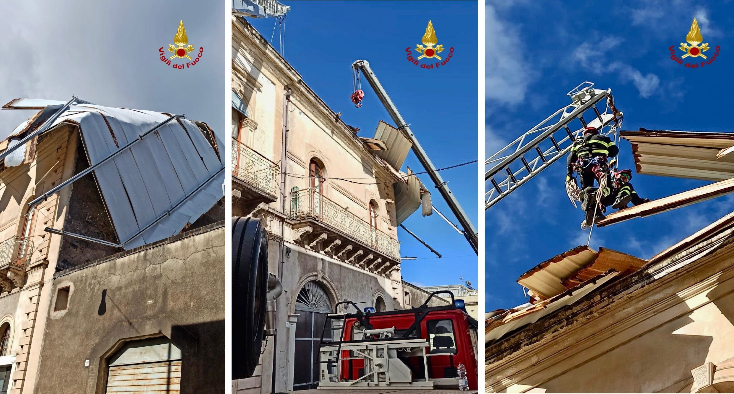 Riposto, tetto pericolante (e pericoloso) per il maltempo: edificio messo in sicurezza dai vigili dei fuoco