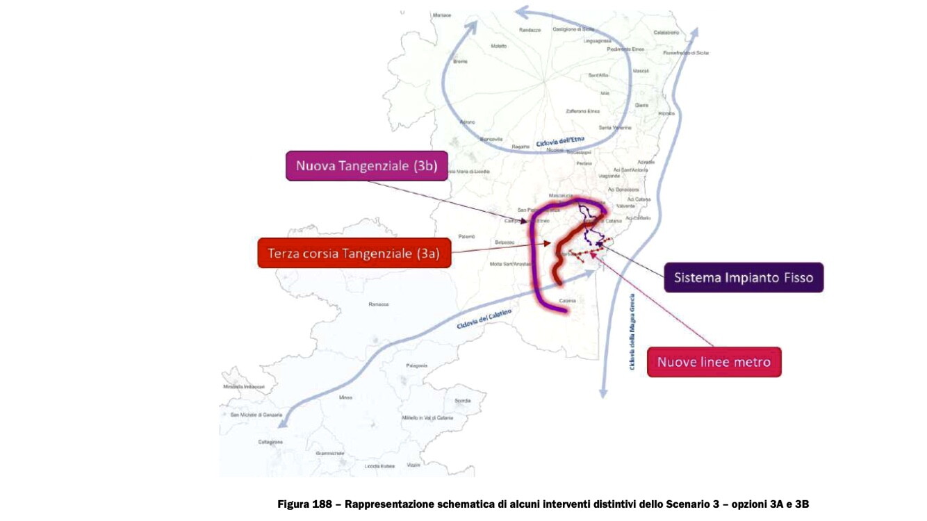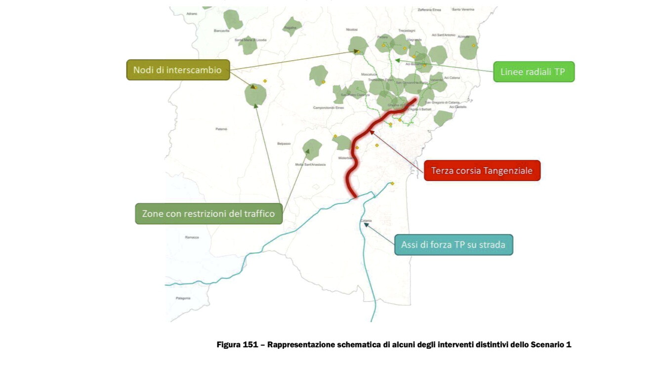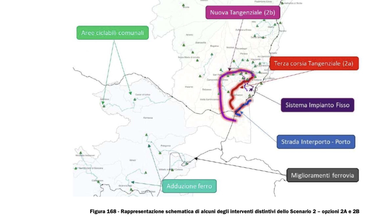 Nel Pums si tiene conto degli interventi previsti sulle infrastrutture stradali, e spiccano su tutte la terza corsia della tangenziale e la seconda tangenzialesui parcheggi ed aree di interscambio modale (anche se non si cita il parcheggio di San Nullo, mentre rientra il sospirato parcheggio multipiano Repubblica), ma anche sulla rete ferroviaria Rfi, sulla rete metropolitana e ferroviaria extraurbana Fce, sul trasporto pubblico su gomma, sul sistema portuale e aeroportuale, infine gli interventi su piste ciclabili e aree pedonali in ottica di “riqualificazione urbana e transizione green”, oltre che itinerari naturalistici.