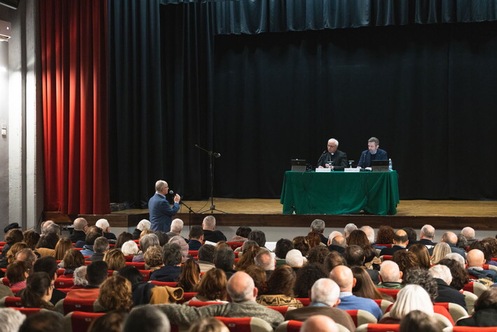 Non è che l’inizio di un percorso che, nel breve giro di un’ora, ha visto Mons. Baturi recuperare alcune pagine della millenaria sapienza teologica cristiana e gli episodi, le parole e gli insegnamenti del magistero papale. Così Mons. Baturi ha preso le mosse proprio dalle lacrime versate l’8 dicembre scorso da papa Francesco per le vittime del conflitto in Ucraina, scorgendo in esse la documentazione di come sia ancora possibile quella «umanità che si lascia commuovere da un’altra umanità».