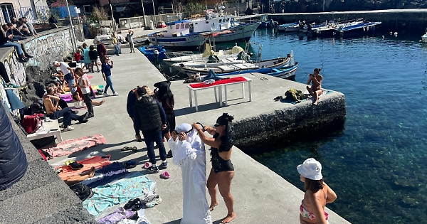 E' inverno ma sembra primavera: a Catania bagni in costume... di Carnevale (fotogallery)