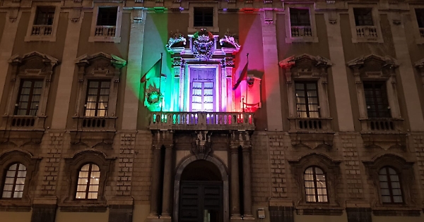 Coronavirus, tutte le sere municipio di Catania con le luci del Tricolore
