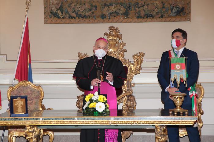 Catania - “Vivere le festività agatine in modo più intimo e rispettando le prescrizioni delle autorità. I catanesi saranno all’altezza della sfida cominciando proprio dall’offerta della cera”. Parole del Sindaco di Catania Salvo Pogliese. Raccomandazioni ribadite anche nel corso della consegna della Candelora d’Oro a Monsignor Salvatore Gristina. Un riconoscimento che ogni anno viene conferito a personalità che si sono distinte per l’alto impegno civile, religioso e culturale a favore della città. “Si tratta di un gesto assolutamente doveroso, di rispetto e di sincera gratitudine nei confronti di una persona che ha servito la nostra città e la provincia per 19 anni. Un compito portato a termine con grande abnegazione, discrezione, garbo, rispetto istituzionale e grande propensione al dialogo”. Presenti le autorità religiose, civili e militari debitamente distanziate.