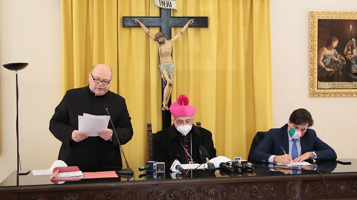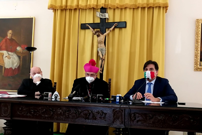 Catania - Presentato stamane in arcivescovado a Catania il programma della festa della patrona Agata, celebrata nei giorni dell'1, 2 e 3 febbraio. L'edizione 2021 della festa subirà modifiche e restrizioni per il rispetto delle norme anti-covid. Solo momenti liturgici essenziali a porte chiuse, senza la presenza fisica dei fedeli, e tutti rigorosamente da seguire in diretta streaming sui canali social dell’Arcidiocesi di Catania. Questi i principali contenuti del programma. Al Sindaco del capoluogo etneo Salvo Pogliese il compito di rappresentare l’intera cittadinanza in alcuni momenti quali l’offerta della cera alla Santa Patrona e nelle operazioni di apertura del Sacello. A distanza di sicurezza con l’Arcivescovo Mons. Salvatore Gristina che presiederà la Messa dell’Aurora.