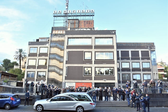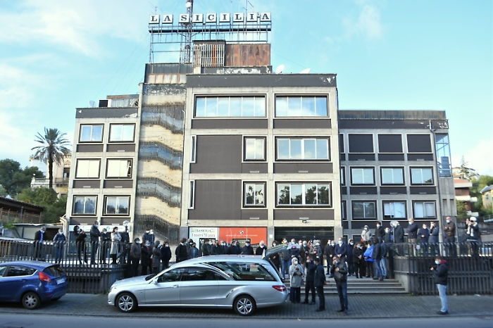 Catania - Una sosta dovuta e doverosa in viale Odorico da Pordenone dinnanzi al quotidiano La Sicilia. Un ultimo saluto al giornalista catanese Tony Zermo da quello che lui considerava il "suo" giornale per la lunga e appassionata appartenenza professionale alla testata. Il feretro dell'ex inviato del Quotidiano ha sostato per una mezz'oretta davanti all'ingresso prima di raggiungere la cattedrale per la celebrazione dei funerali. Colleghi giornalisti e amministrativi lo hanno accolto e salutato con un lungo applauso. Tony Zermo, firma storica de La Sicilia, è scomparso nella notte di ieri, all'età di 89 anni, nell'ospedale di Acireale dove era ricoverato da settimane per aver contratto il covid.