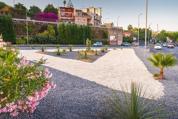 Nella zona del tondo Gioeni è stato anche riqualificato e allargato il giardino verticale che ricopre parte del muro che costeggia la circonvallazione.
