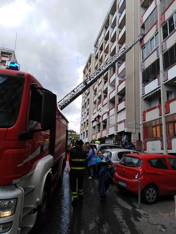CATANIA - La squadra squadra dei vigili del fuoco del Comando Sud, 7 ambulanze e un'automedica sono intervenute questa mattina in viale Grimaldi a San Giorgio per l'incendio che si è sviluppato nell'edifico che si trova al numero 6, una grossa palazzina che fa fa parte di una schiera di case popolari. Le fiamme hanno avuto origine al 4° piano della scala F ma si sono rapidamente sviluppate e hanno raggiunto il sesto piano: 10 persone sono rimaste intossicate e sono state trasportate negli ospedali Garibaldi e Cannizzaro per le cure del caso. L'edificio è stata evacuato per precauzione e per consentire i controlli sulle abitazioni interessate dalle fiamme.