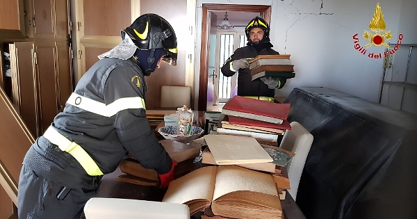 Acireale (Catania) - Sullo scenario dell'emergenza sisma i Vigili del Fuoco non si occupano soltanto di verifiche e sopralluoghi. A Pennisi, frazione di Acireale, le squadre dei Vigili del Fuoco del Campo Base di Acireale, sono intervenute per recuperare e mettere in sicurezza due pianoforti ed una preziosa collezione di libri e spartiti in "braille", il sistema di scrittura e lettura per non vedenti.