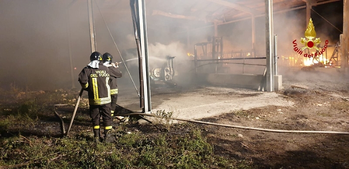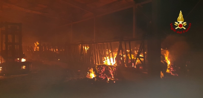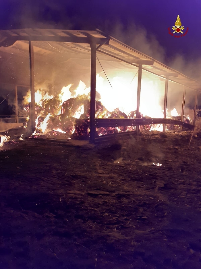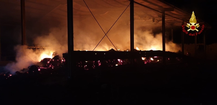 Vizzini (Catania) - La scorsa notte la squadra di Vigili del Fuoco del distaccamento volontario di Vizzini è intervenuta in contrada Torretta, per spegnere un incendio di vaste proporzioni che ha interessato un fienile con oltre 400 balle di fieno. All'interno della struttura vi erano custoditi anche dei mezzi utilizzati per triturare il fieno e una mungitrice elettrica, tutti rimasti coinvolti nell'incendio. In supporto alla squadra dei Vigili del Fuoco volontari di Vizzini, la Sala Operativa del Comando Provinciale di Catania, ha inviato un'autobotte di rincalzo con personale dalla Sede Centrale.