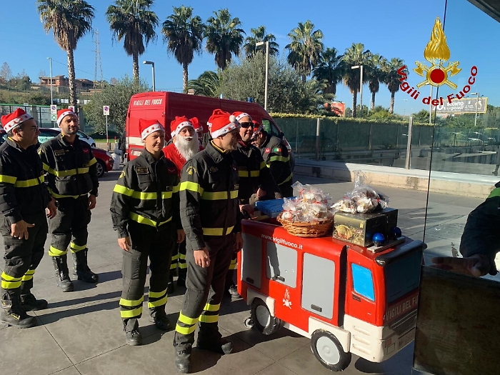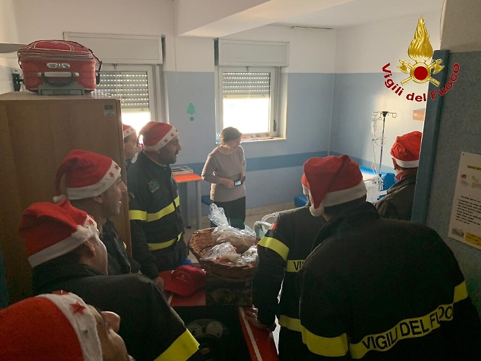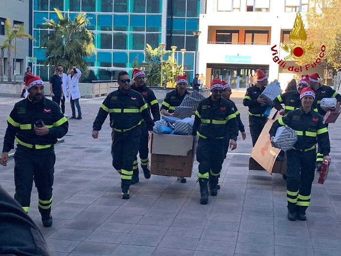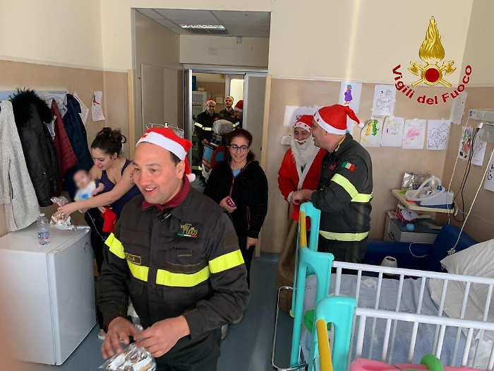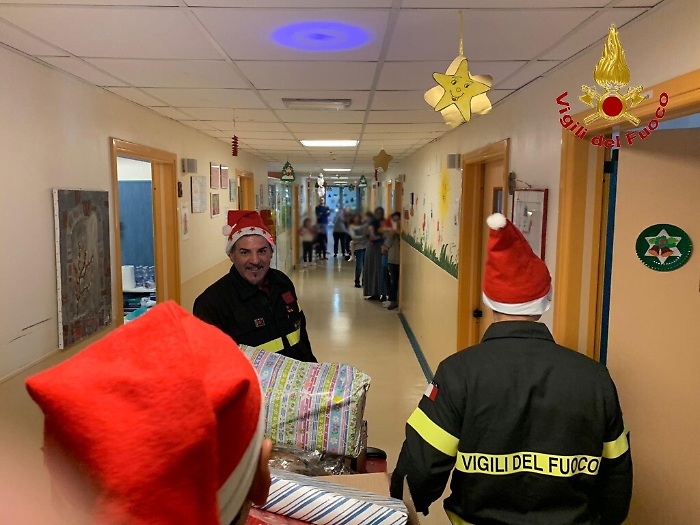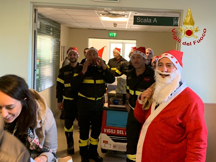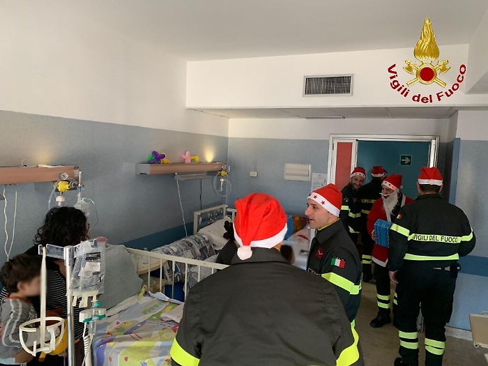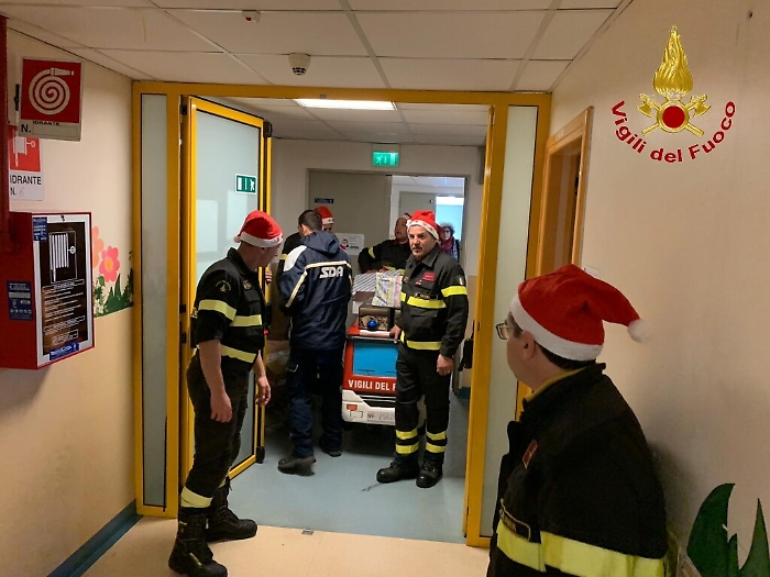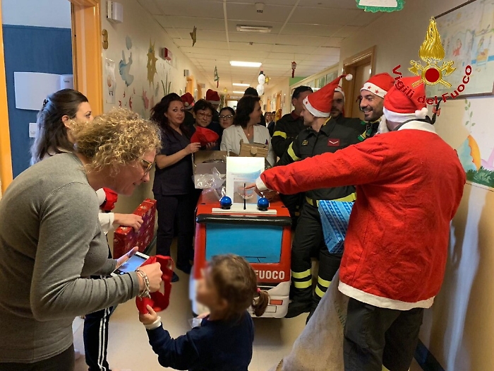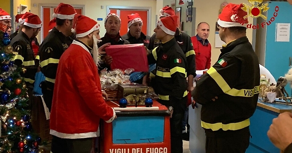 In corsia arriva Babbo Natale: i doni dei vigili del fuoco ai piccoli degenti