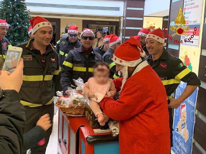 Catania - Anche quest'anno ha preso vita il progetto "Un'autopompa in corsia". Un' iniziativa spontanea dei vigili del fuoco del Comando Provinciale di Catania e, adesso, anche di Trapani. Quest'anno, oltre 200 vigili del fuoco hanno partecipato all'iniziativa, impegnando il proprio tempo libero per "invadere" con dei sorridenti "Babbo Natale", le corsie dei reparti pediatrici di alcuni ospedali catanesi e trapanesi, e non solo.