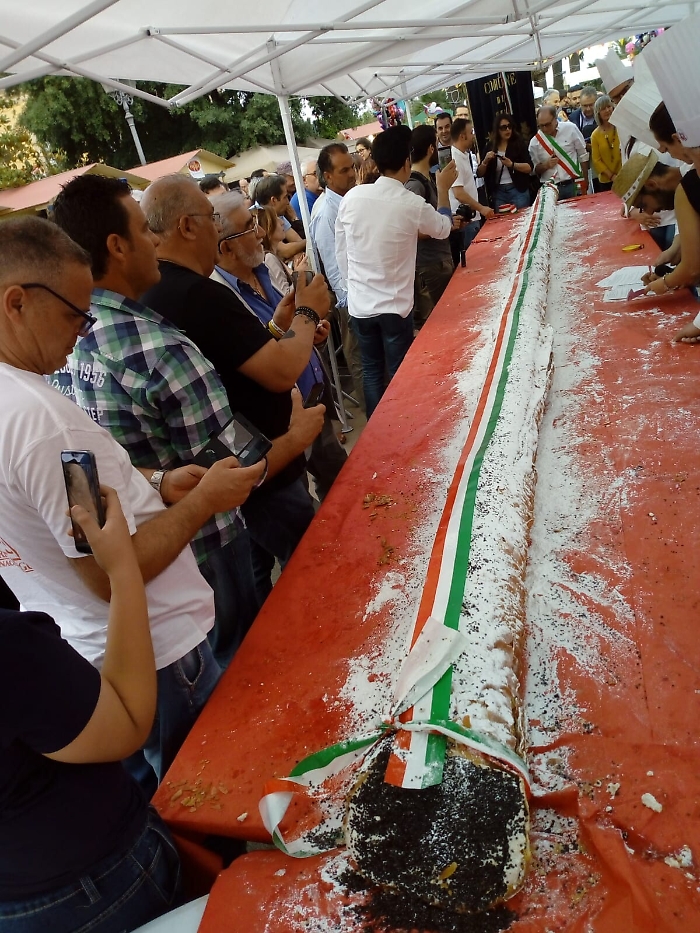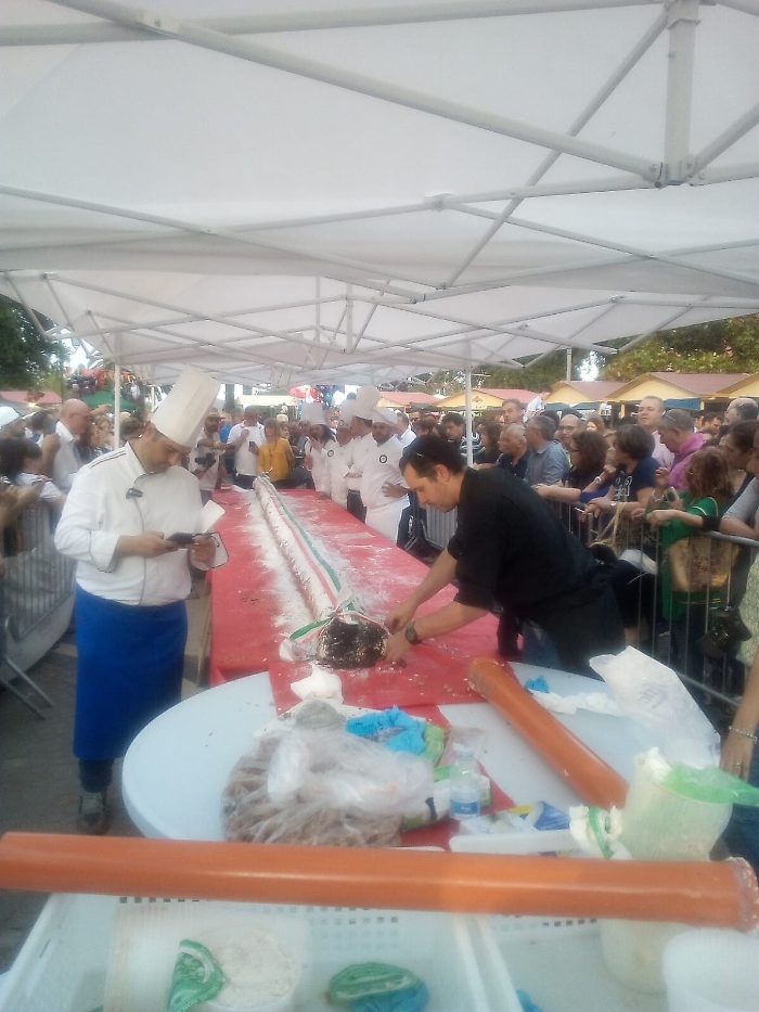 Alla manifestazione, profeticamente denominata “Sagra del cannolo di Sicilia” che si è svolta dal 25 al 27 maggio, tra le varie iniziative contava quella della preparazione del più grande cannolo del mondo.