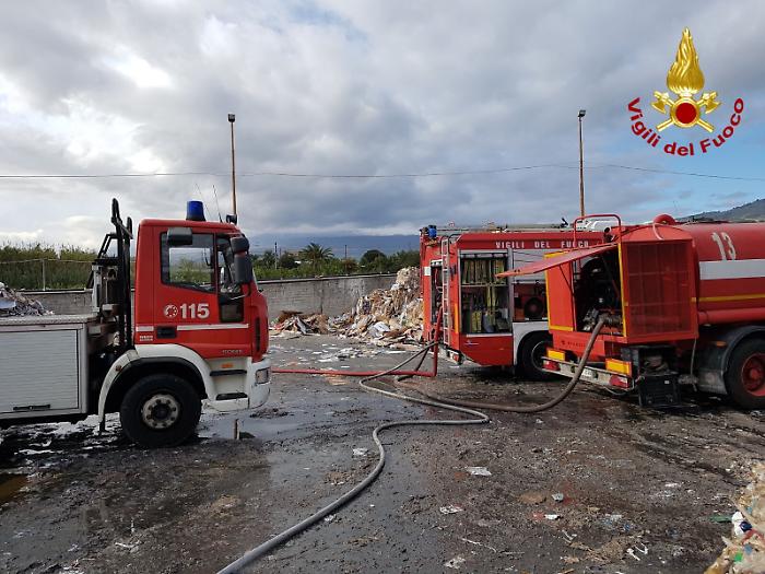 Calatabiano (Catania) - Prosegue oramai da oltre 3 giorni interi, l'opera di spegnimento del vasto incendio che si è sviluppato nello stabilimento della cartiera Sacca, di via Pasteria sulla S.Statale 114, nel Comune di Calatabiano (CT). L'incendio ha interessato circa 2300 tonnellate di carta da riciclare, depositata in una zona esterna dello stabilimento. Ad oggi continuano le operazioni di smassamento e minuto spegnimento da parte delle squadre dei vigili del fuoco.