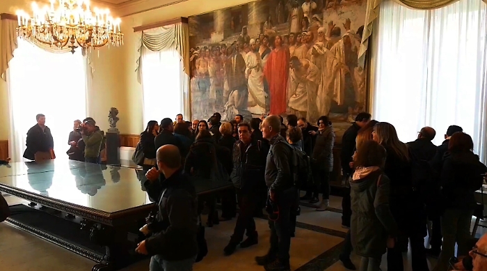 Come sempre molto seguite le visite alla scoperta del Palazzo, un'autentico scrigno di tesori, organizzate grazie all'accordo tra l'Assessorato alla Cultura e l'Associazione guide turistiche Catania presieduta da Giusy Belfiore. Un tour che prende il via dalla corte del Palazzo, con le sue lapidi che raccontano tanti episodi della storia Catanese, per concludersi nel Salone delle feste. Turisti e Catanesi hanno mostrato in particolare di apprezzare le grandi tele di Giuseppe Sciuti che fanno parte della mostra permanente del pittore risorgimentale.