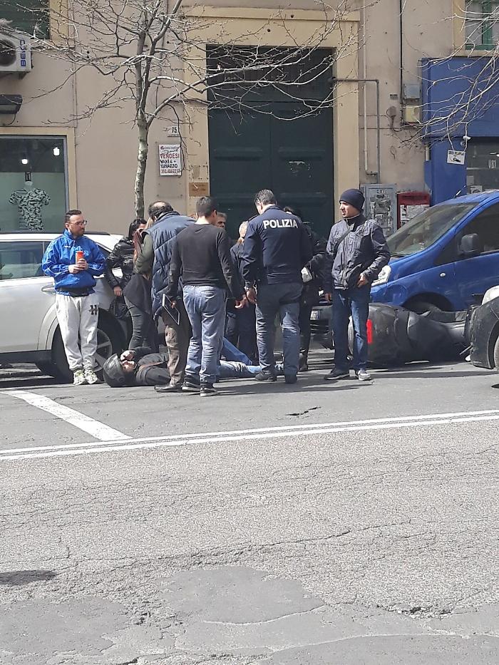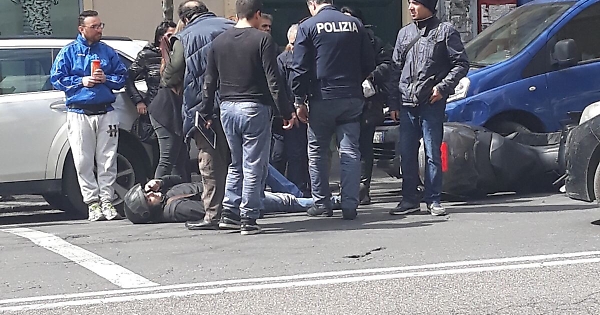Catania - Incidente stradale poco prima di mezzogiorno lungo viale Vittorio Veneto. Un motociclista è finito a terra per fortuna senza gravi conseguenze grazie anche alla protezione del casco. L'impatto è avvenuto con un'auto il cui autista non sarebbe rimasto ferito mentre il mezzo ha riportato diversi danni.