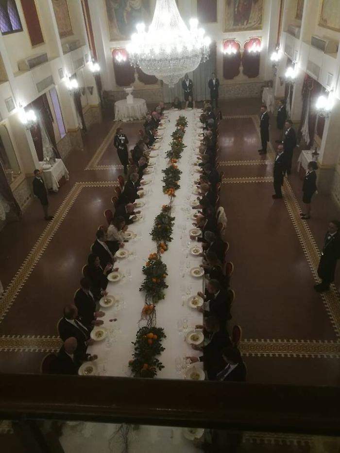 Il ricevimento, per una cinquantina di invitati (tra cui il procuratore generale di Roma Gianni Salvi e l'imprenditore Carlo De Benedetti), ha avuto luogo all'interno dello stesso maniero con il menù preparato dallo chef stellato Pino Cuttaia. Per entrambi si è trattato del secondo sì.