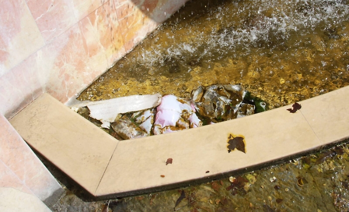Uno strato di acqua marroncina, misto ai coriandoli dell'ultimo carnevale e al solito immancabile pacchetto di sigarette vuoto. E così la fontana della Villa Bellini a Catania diventa la pattumiera dove buttarci dentro di tutto. All'occorrenza un cestino per i rifiuti, là dove turisti e visitatori “ammirano” e fotografano: scempio misto ad inciviltà.