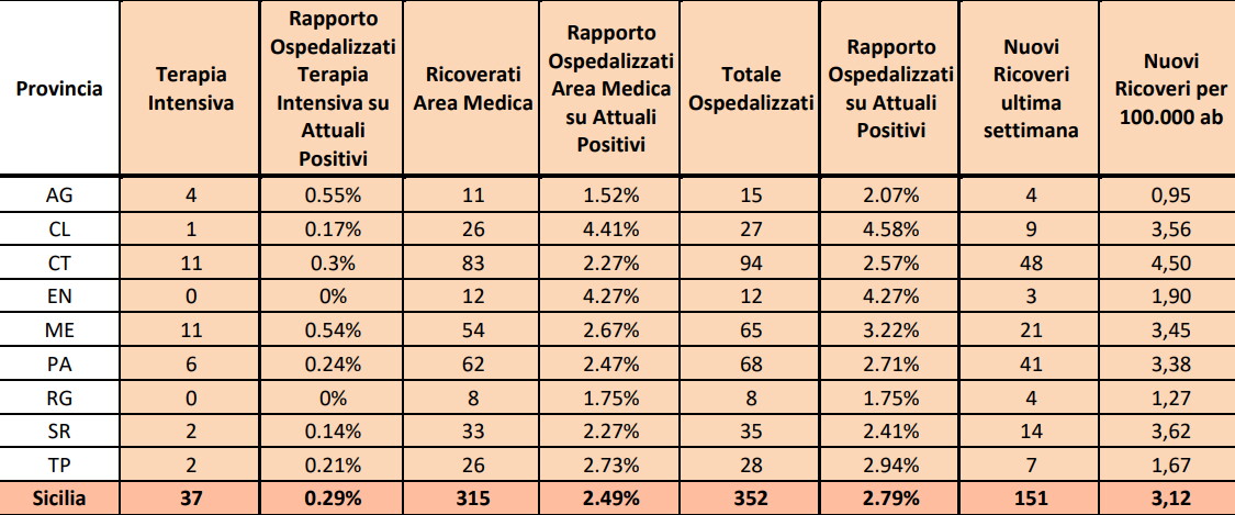 Queste tre province, da sole, rappresentano  oltre la metà (57%) dei nuovi casi registrati nell'Isola. Confermato il trend della settimana scorsa, che vede tra i soggetti più colpiti dal virus quelli appartenenti alle fasce d’età scolare, e in particolare i ragazzi tra 11 e 13 anni (con un'incidenza 2,4 volte più alta rispetto alla media), tra i 6 e i 10 anni (23% di rischio in più) e tra i 3 e i 5 anni.
