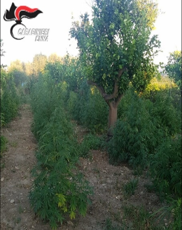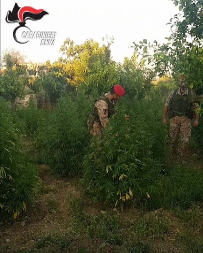 I Carabinieri di Nicosia e dello Squadrone Eliportato Cacciatori “Sicilia” hanno sequestrato una piantagione con 250 piante di cannabis ed arrestato due catanesi accusati di essere i coltivatori. In manette sono finiti Giuseppe Privitera, di 35 anni e Antonino Flora di 29 anni. I due gestivano un terreno in contrada Iazzo Vecchio del Comune di Centuripe. Le piante erano di un’altezza compresa tra 1 e 2 metri ed in avanzato stato di maturazione. L'operazione è scaturita da una prolungata attività di osservazione e di controllo sul territorio dei Carabinieri della Compagnia di Centuripe e dello quadrone Eliportato Cacciatori “Sicilia” .