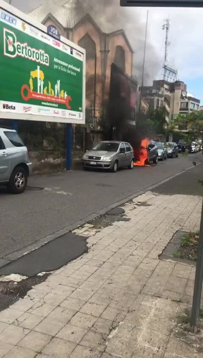 CATANIA - Per cause ancora da accertare un'automobile parcheggiata di fronte la chiesa della Nostra Signora di Lourdes sulla circonvallazione di Catania. C'è stato il timore che il fuoco potesse rapidamente propagarsi alle vetture vicine, ma il tempestivo intervento dei vigili del fuoco ha evitato il peggio.