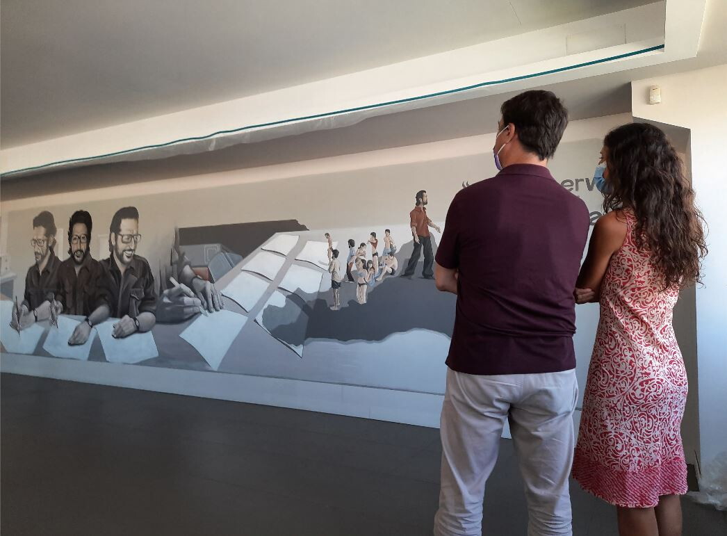 Alla Geotrans, l'azienda confiscata alla famiglia Ercolano, un murale dedicato a Pippo Fava