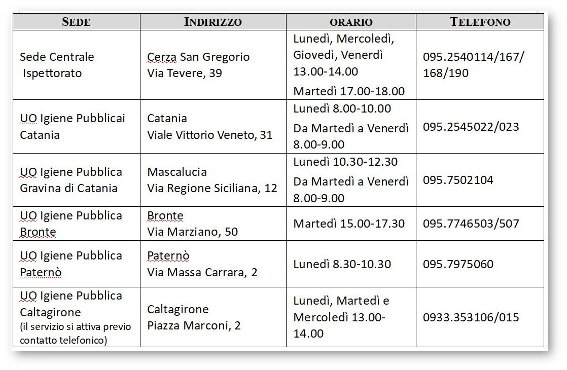 Tutti i Venerdì, dalle ore 16.00 alle 18.00 Mascalucia - presso Ufficio sanitario Asp - Via Regione Siciliana, 12