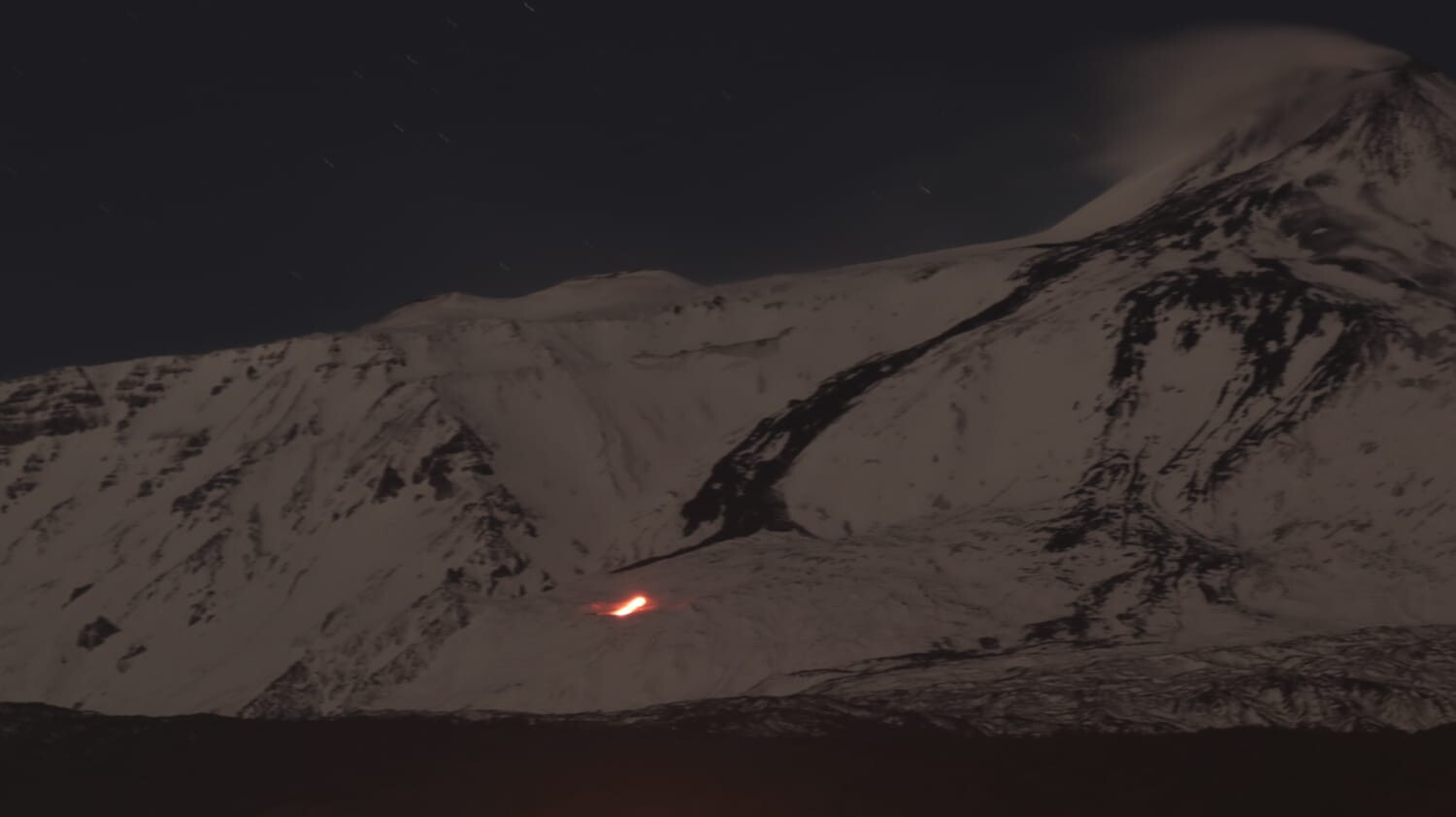 Piccola colata lavica sull'Etna: il manto bianco si tinge di rosso nella Valle del Bove