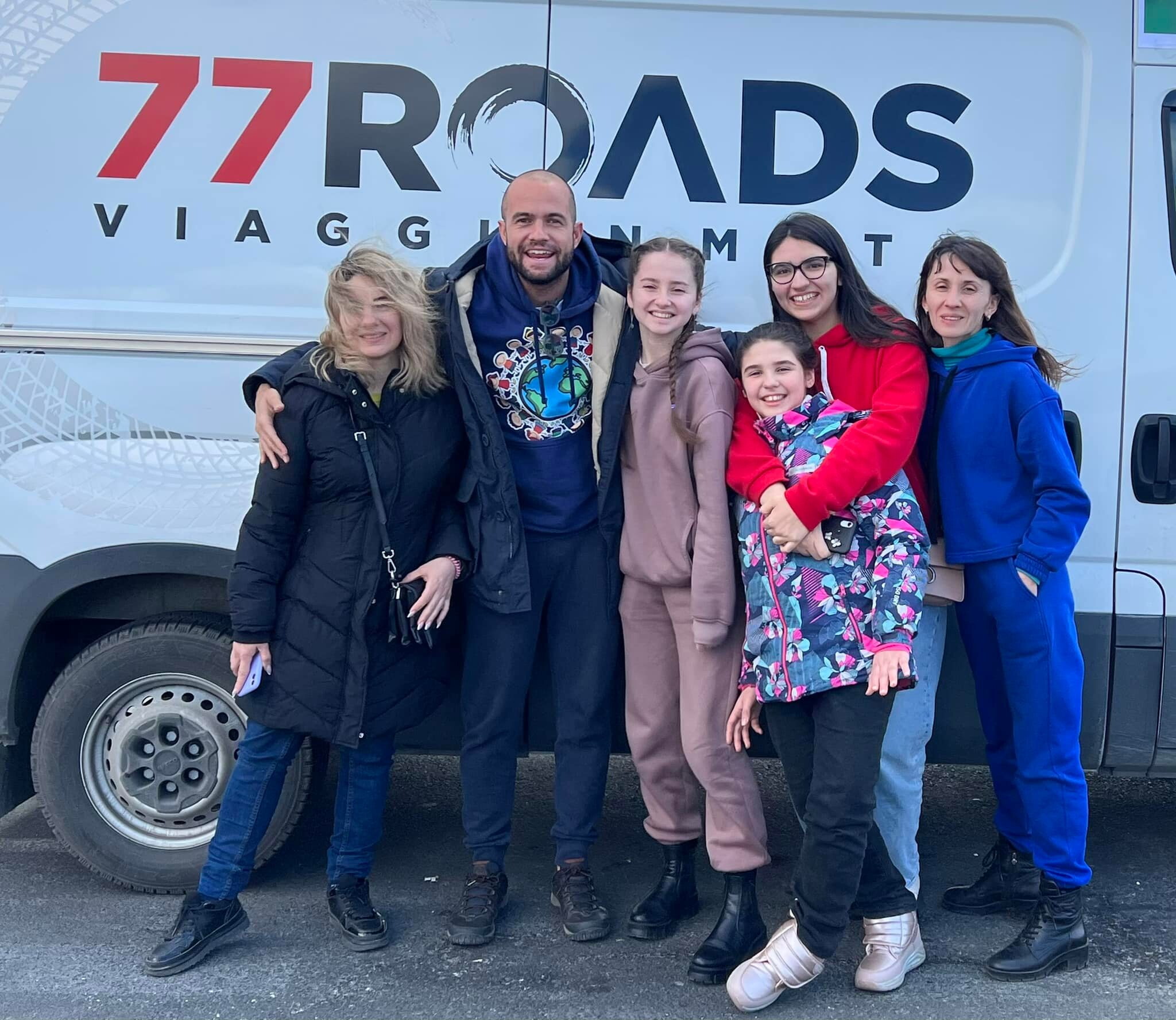 "Due mamme e tre figlie incontrare per coincidenza ai confini con la Romania. Avevano fatto una coda di 19 ore per passare la frontiera. Tania, una mamma, aveva fatto pratica di guida per una settimana per allenarsi per la fuga. Per coincidenza con Alessandro le abbiamo incontrate in una stazione di rifornimento in preda al panico. Tania aveva paura a guidare fra le curve innevate delle montagne rumene. Ci hanno chiesto un consiglio su come poter fare per arrivare a Vienna, in Austria, dai loro parenti. Mi sono subito offerto di guidare la loro macchina e Ale non mi ha lasciato solo, decidendo di venire con il furgone per dividerci le ragazze e portarle al sicuro. Ci siamo distaccati dagli autisti dei tir che hanno portato i medicinali e gli alimenti per il popolo ucraino. 1000 km di distanza. Inizio a sciogliere subito il ghiaccio scherzando e facendole pensare a tutto meno che alla guerra e ai mariti, padri, parenti e amici lasciati, con la speranza di rivederli presto. Non c’era maniera migliore di rappresentare la festa della donna. Auguri a tutte le donne del mondo, ogni giorno, non solo oggi".