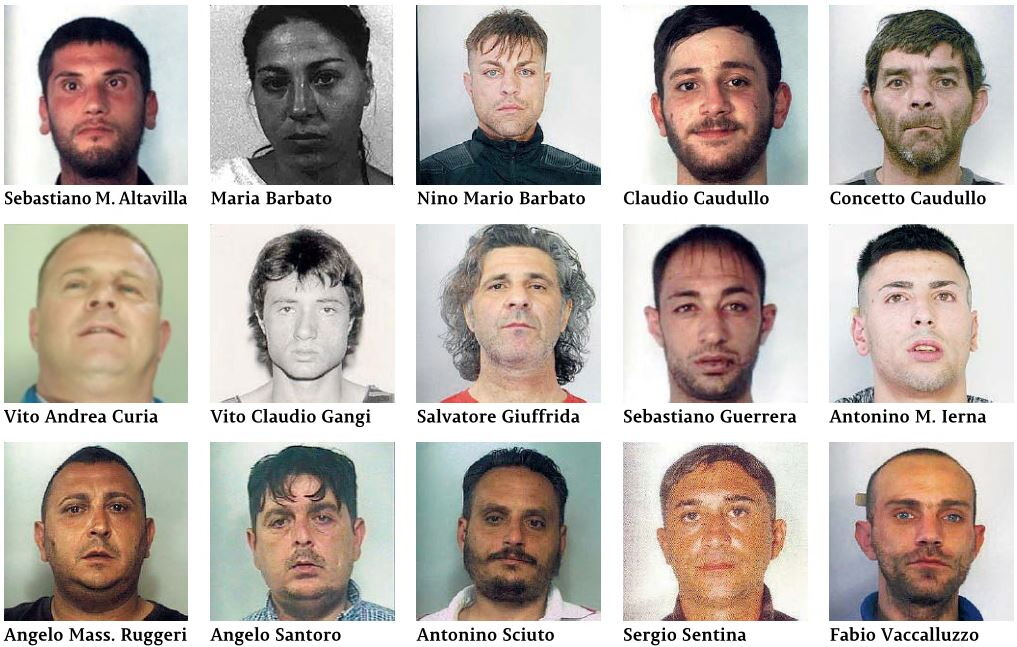 I destinatari della custodia in carcere sono: Sebastiano Mirko Altavilla, Maria Barbato, Nino Mario Barbato, Claudio Caudullo, Concetto Caudullo, Alfio Cavallaro, Marco Enrico Cocola, Maurizio Michelangelo Cocola, Renato Concetto Consoli, Silvio Consoli, Vito Andrea Curia, Salvatore Giuffrida, Sebastiano Guerrera, Antonino Michael Ierna, Filippo Ierna, Tanino Dario Ierna, Stefano Lanzafame, Alfredo Mantia, Giuseppe Razza, Angelo Massimo Ruggeri, Angelo Santoro, Antonino Sciuto, Sergio Sentina, Fabio Vaccalluzzo, Maurizio Vaccalluzo, Carmelo Ventaloro, Giuseppe Ventaloro, Mirko Ventaloro, Alessandro Carmelo Zappalà.