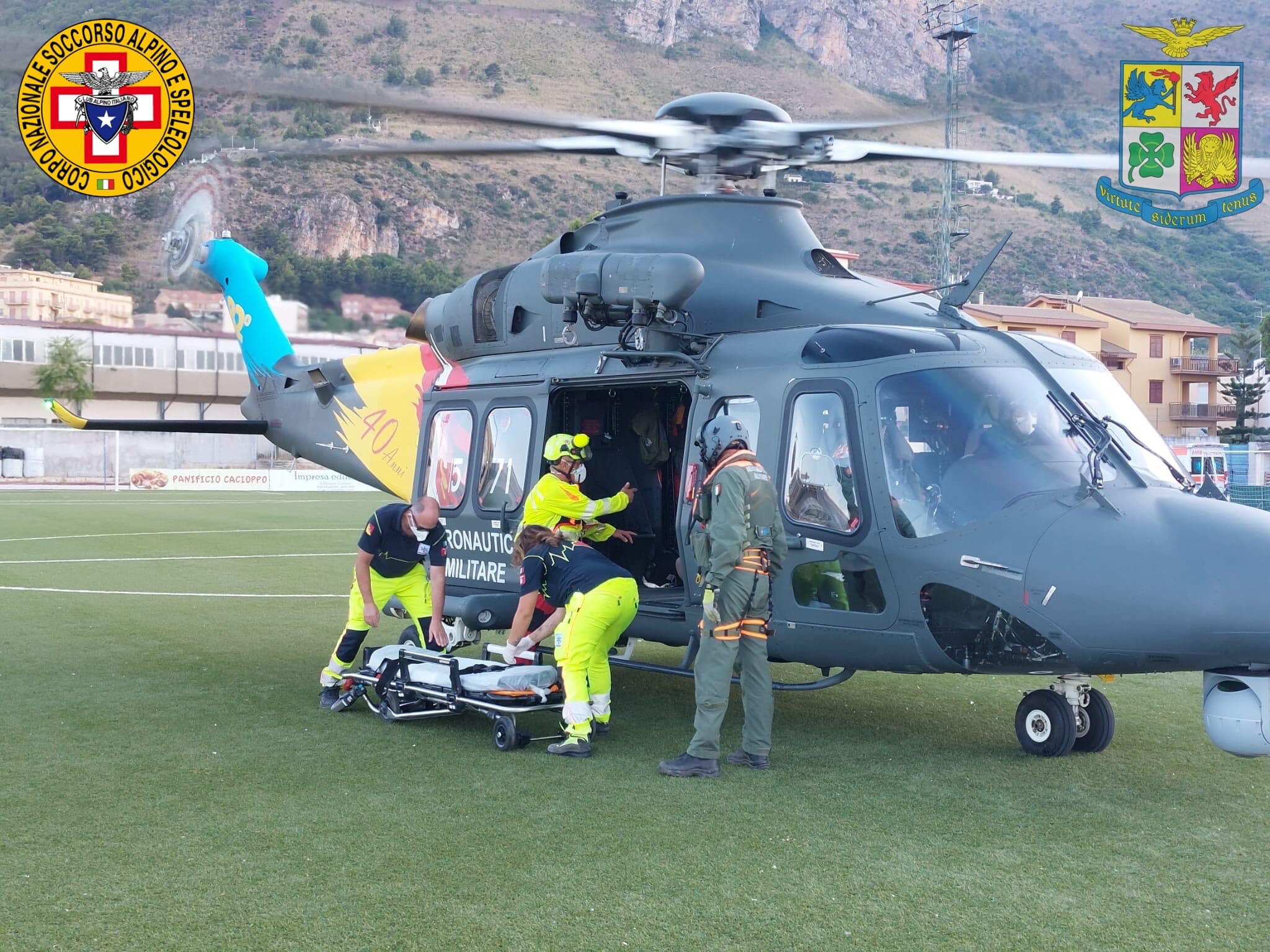 Dall’aeroporto di Trapani Birgi è decollato un elicottero HH 139B dell’82° centro Csar che ha imbarcato due tecnici del SASS per trasportarli pochi minuti a Cala Berretta. Qui hanno immobilizzato il ferito e lo hanno imbarcato sull'elicottero con il verricello. Il giovane è stato poi sbarcato al campo sportivo di Castellammare, dove ad attenderlo c'era un’autoambulanza del 118 che lo ha trasferito all’ospedale di Alcamo. Sul posto anche i carabinieri del comando compagnia carabinieri di Alcamo e il personale che ha in gestione il campo sportivo di Castellammare.