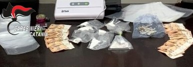 Nella casa dell'uomo, ad Adrano, i carabinieri hanno recuperato un ingente quantitativo di droga, materiale per il confezionamento delle dosi e denaro contante, ritenuto provento dell’attività delinquenziale