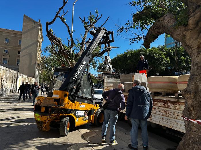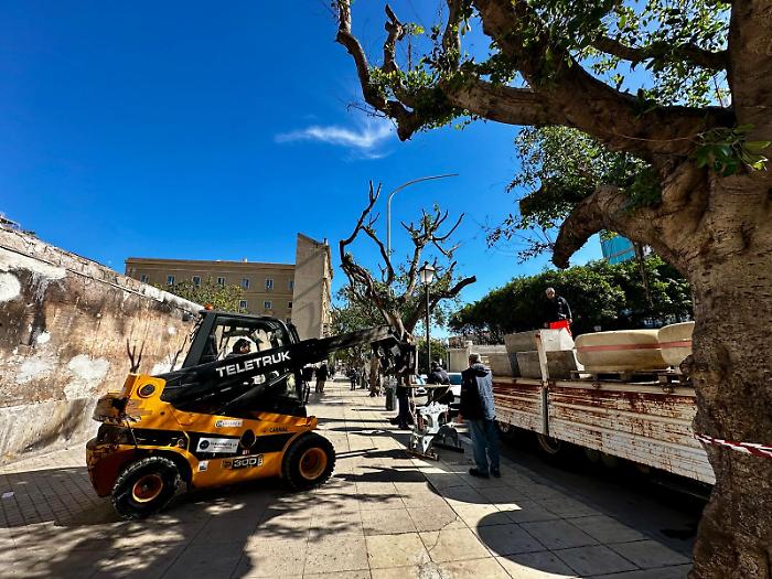 Stamattina, gli operai del Coime hanno iniziato la posa degli arredi urbani nel tratto di piazza Giulio Cesare compreso tra via Roma e via Maqueda.
