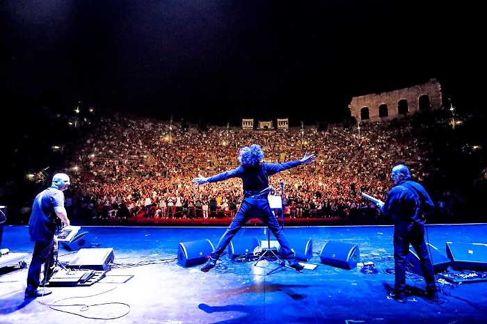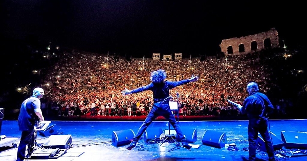Marsala, Teatro Impero, scena della kermesse, stasera si replica al Metropolitan di Catania, inondata dal carisma di un repertorio senza età che viaggia sull'intensità espressiva ed armonica dettata da Patrick Djivas, Flavio Premoli, Lucio "Violino" Fabbri e l'ulteriore presenza di Michele Ascolese, chitarrista storico del cantautore genovese.