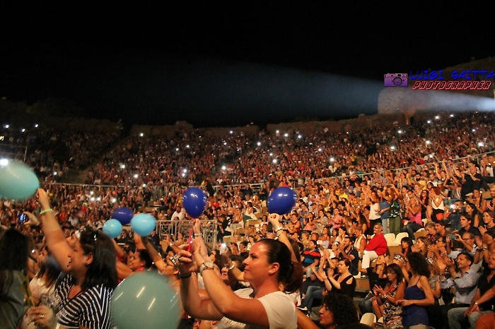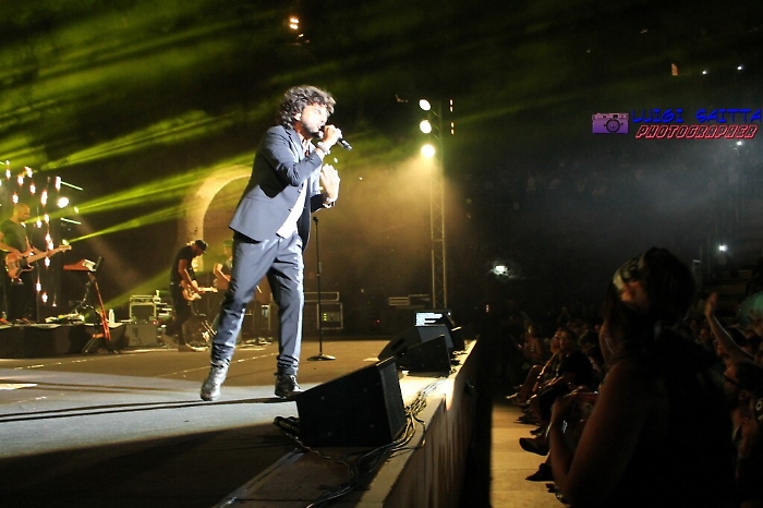 E' quasi sold out il concerto di Francesco Renga al teatro antico di Taormina, dove il bravo cantautore ritorna a distanza di due anni. Un pubblico di ogni età ha accolto il cantante, cantando i successi presentati e ballando nei pezzi più ritmati.